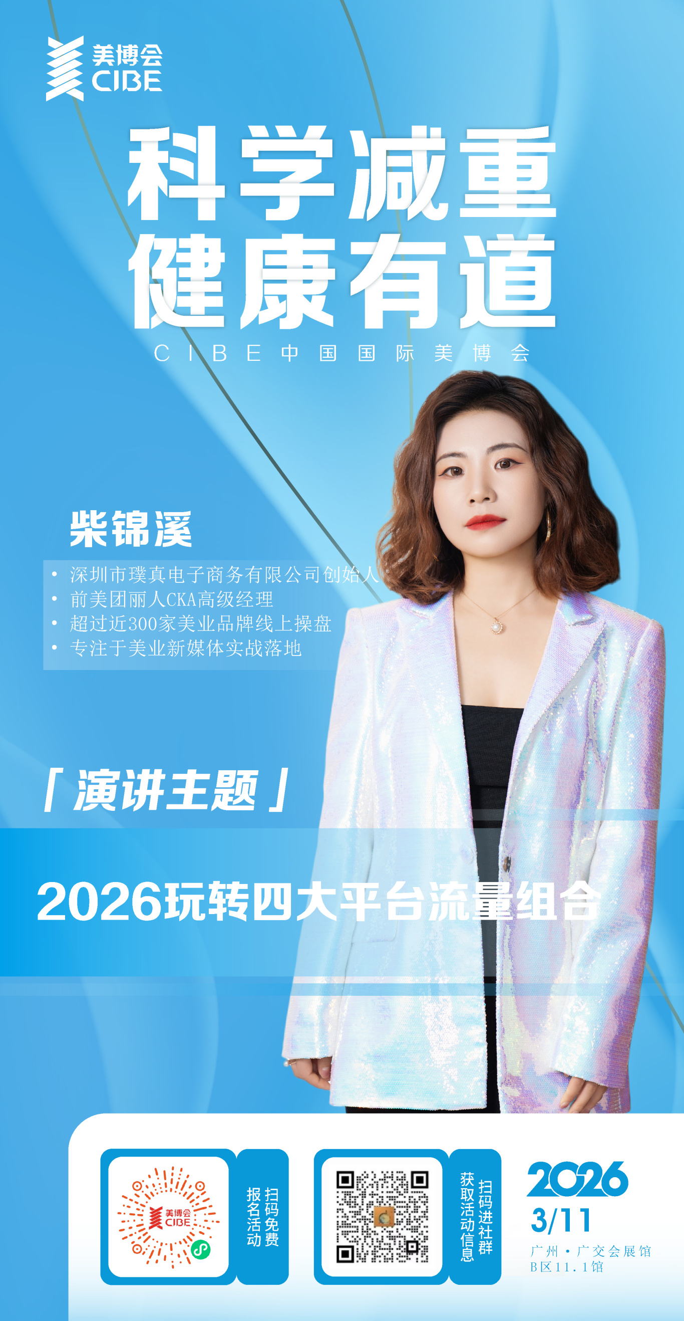 论坛将聚焦科学体重管理赛道的市场发展与流量运营,深度分析当下体重管理消费人群的需求特征与市场趋势,解读线上流量平台的运营逻辑与流量获取技巧,分享体重管理业务的全域流量组合玩法,包括线上内容打造、精准获客、私域流量沉淀与转化;线下门店的体验升级、服务标准化、客户留存等核心内容。